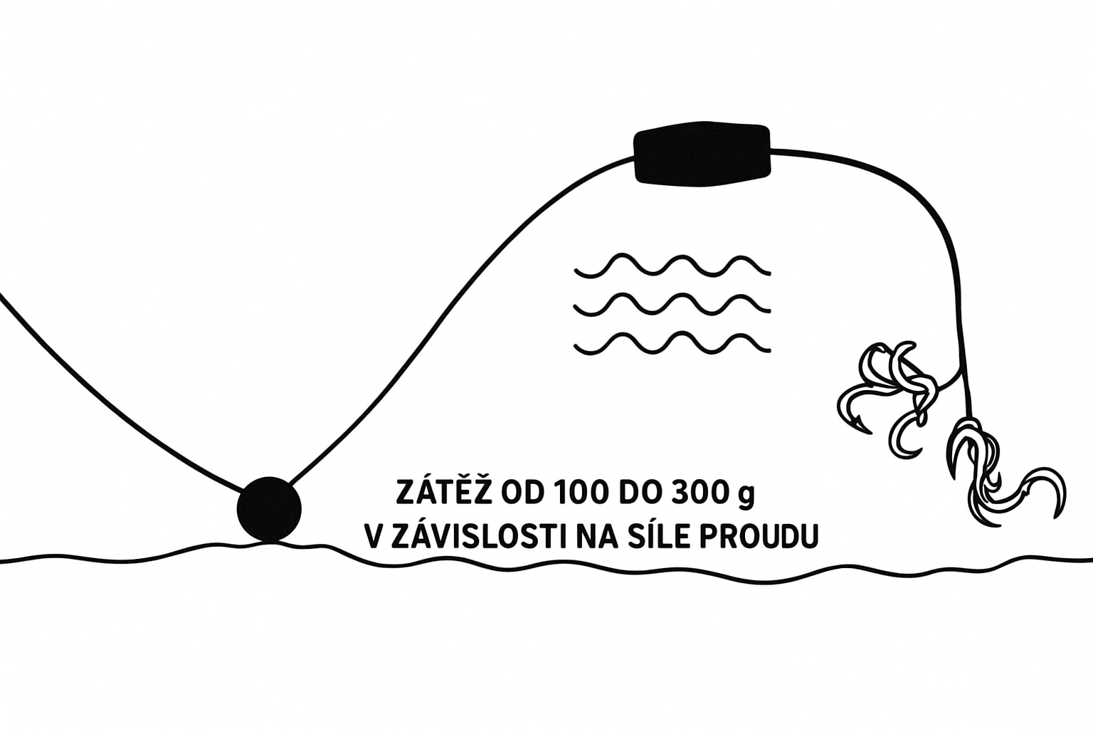 Plovoucí návazec na lov sumců PŘÍČKA je ideální jak pro lov sumců na stojatých vodách bez proudu, tak i na řekách.