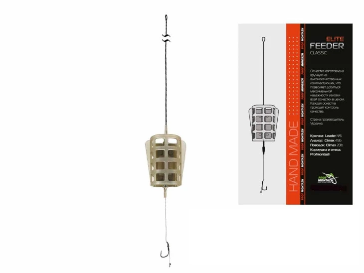 Hotová feederová montáž Elite Classic je sestavena na ledkoru Climax (Germany) 45LB. Krmítko je vyrobeno z nárazuvzdorného plastu a díky maskovacímu camo zbarvení nenarušuje opatrné ryby a dobře splyne s dnem.