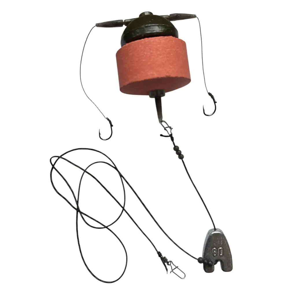 Montáž je vybavena 2 háčky velikosti č. 10 (výroba Korea). V sestavě je použit průběžný závaží typu „vlaštovčí ocas“ o hmotnosti 80 g, který umožňuje regulovat zdvih montáže nade dnem. Konstrukce obsahuje šest stopperů o průměru 5 mm pro nastavení výšky montáže.