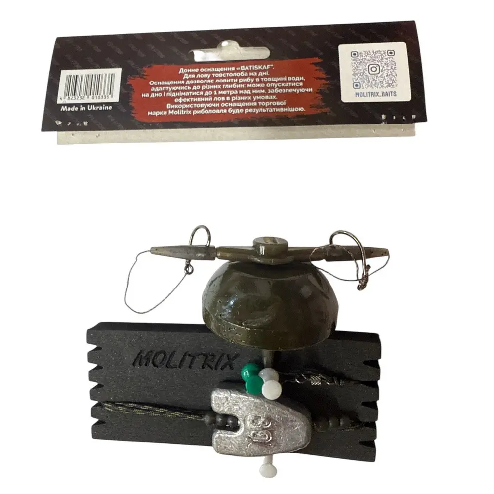 Dnová montáž Molitrix Batiskaf se 2 háčky je určena pro lov tolstolobika u dna. Sestava umožňuje lov ryb ve vodním sloupci s přizpůsobením různé hloubce: může klesnout na dno a zvednout se až 1 m nad něj, což zajišťuje efektivní lov v různých podmínkách.