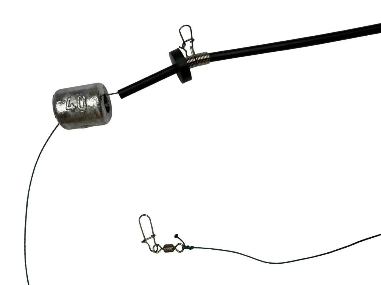 V montáži je použit průběžný (posuvný) olověný závaží. Je vyrobena z pletené šňůry Power Pro. Konstrukce obsahuje tři stopery pro nastavení výšky montáže, anti-tangle prvek (protizakroucení) a gumový tlumič (amortizér).
