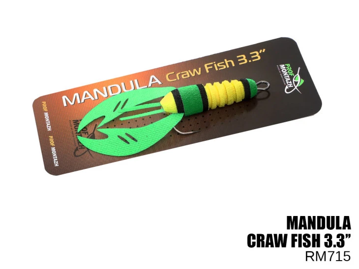 Craw Fish 3,3″ (#715) mandula-korýš je první sériově vyráběná mandula na světě, která je stylizována do korýše. Kromě vnější podobnosti hra návnady také velmi připomíná chování raka pod vodou: na dně mandula-korýš při svislé poloze zaujímá své končetiny a ohrožuje své končetiny. má výraznou hru drápů.