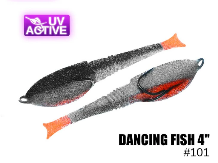 Dancing Fish 4„ #101 (5ks) – vyrábí se ve dvou velikostech 3,5“ a 4″ z kvalitní a pružné pěny. Ocas má vodorovnou polohu a vzdáleně připomíná ploutev. Díky čemuž při animaci nástraha předvádí výraznou hru ocasu ve vertikální rovině.