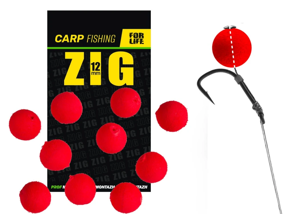 Plovoucí nástraha ZIG 12 mm  byla speciálně vyvinuta pro lov kaprů na ZIG-RIG. S nástrahou ZIG 12 mm můžete snadno lovit ryby ve vodním sloupci, což je obzvlášť důležité v obdobích tvorby termokliny v létě, kdy se ryby necítí pohodlně při krmení ze dna.