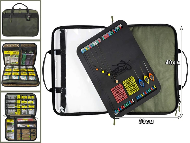 Po otevření prvního oddílu organizéru pod průhledným víkem uvidíme velké, vyjímatelné pouzdro na návazce, určené pro kaprové, feederové nebo plavané návazce. Toto pouzdro pojme až 50 hotových návazců.