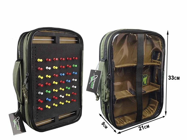 Taška–pouzdro na návazce RIG-BOX ELITE je rozdělena na 2 hlavní oddíly. V první části se nachází velké pouzdro na návazce z materiálu EVA, které pojme více než 30 hotových návazců. EVA návazcové pouzdro lze snadno vyjmout z tašky pro pohodlnou práci s návazci.