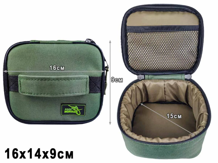 Polotuhé pouzdro na naviják M (16×14×9 cm) – je určeno pro bezpečné uložení nebo přepravu smekacích a multiplikátorových navijáků. Uvnitř pouzdra je kapsička pro uložení drobností nebo dílů navijáku. Pro pohodlné přenášení má pouzdro ergonomické držadlo. Vyrobeno z odolné tkaniny PVC OXFORD D600.