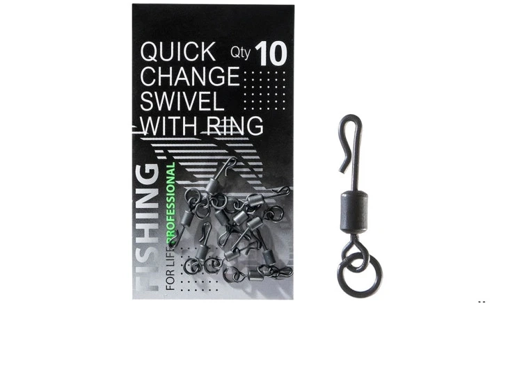 Rychlovýměnný obratlík (10 ks) – vyroben z vysoce kvalitní pružinové oceli, má PTFE ochranu proti korozi, která dodává obratlíku matný odstín. Široce se používá v kaprových montážích. Běžně se kombinuje s gumovým odklonem, umožňuje rychlou výměnu návazce nebo zátěže podle typu montáže.