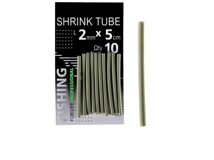 Smyšťovací trubička zelená D-2 mm, L-5 cm (10 ks) – určena k fixaci uzlů a spojů, široce využívána při vázání vlasových montáží, kde vytváří ochrannou bužírku na háčku a správně jej orientuje.