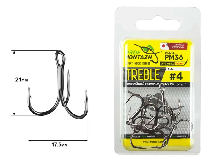Celá série trojháčků PM36 zahrnuje 6 velikostí – od čísla 2 do 12. Snadno si tak vyberete vhodný háček pro své nástrahy, montáže, živé nástrahy (např. při lovu na položenou) a další rybářské potřeby.