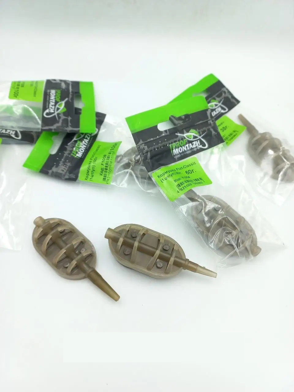 Krmítko Flat – Classic – má nejvyšší kvalitu, plastová část je pevná a spolehlivá, vyrobená z prvotního materiálu, zátěž je pevně upevněna pomocí nýtů. Nejlépe se používá Flat – Classic s nástrahami malých a středních velikostí: červi, kukuřice, hrách, tygří ořech, pop-upy a boilies do 10 mm. Vhodné pro použití jak s klasickými krmnými směsmi, tak i s peletami – návnada dobře drží bez ohledu na vzdálenost a podmínky lovu. Díky spodní poloze zátěže vždy po dopadu na dno dopadne nástrahou a krmením směrem nahoru, což zajišťuje volný přístup pro rybu. Krmítka s hmotností 70, 80, 90 a 100 g mají posunuté těžiště, což umožňuje snadné a přesné náhozy i za bočního větru. Pro pohodlné a správné plnění krmítka návnadou je nejlepší používat formu ProfMontazh. Klasický oválný tvar a standardní velikost jsou vhodné pro většinu podmínek rybolovu.
