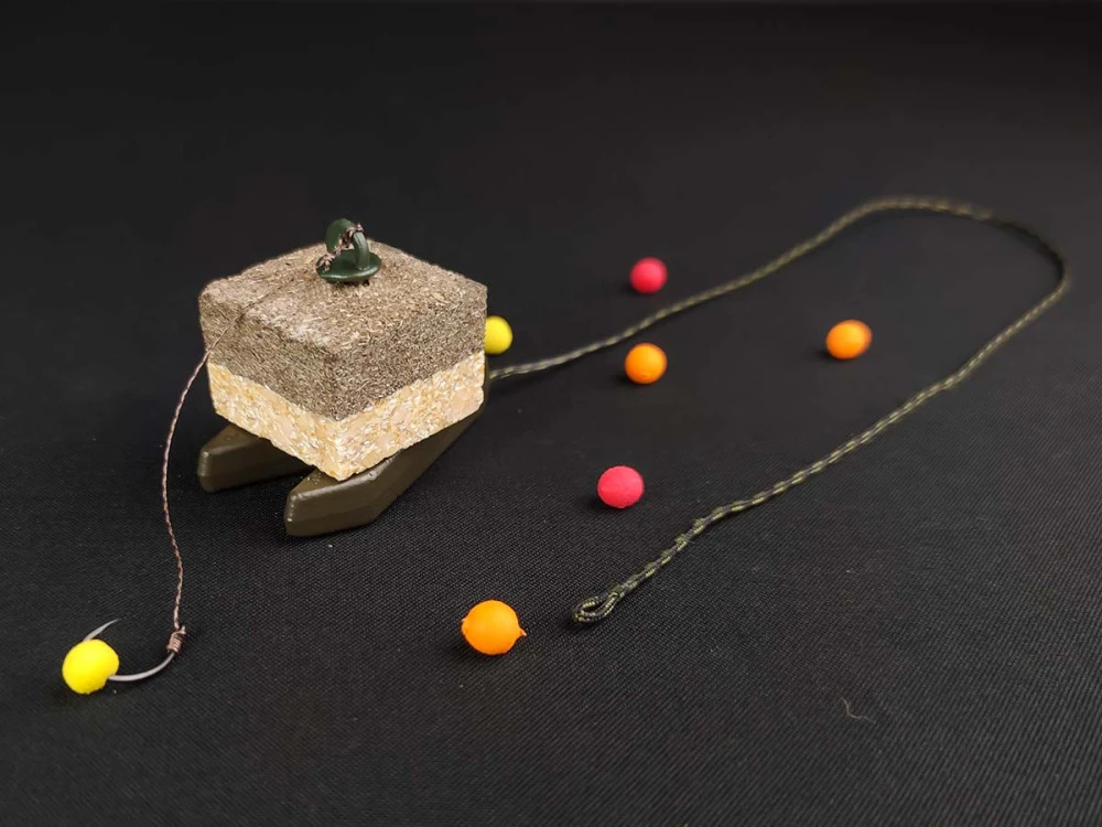 Montáž krmítko na makuhu Vlaštovčí ocas se vyznačuje vynikajícími letovými vlastnostmi, neponořuje se do bahna a drží stabilitu i v silném proudu.