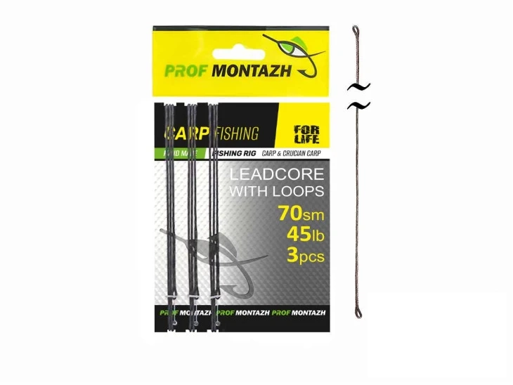 Olověná šňůra s očky (L-70 cm, 45LB) (3 ks) – určena pro výrobu kaprových montáží a sestav. Použita je kvalitní potápějící se olověná šňůra Climax (Německo) s nosností 45 lb. Barva Camo se dokonale slévá s dnem vodní nádrže, což ji činí pro ryby téměř neviditelnou. Pro snadnější montáž jsou na obou koncích šňůry vytvořena pevná očka, která jsou zalepena voděodolným lepidlem. Délka jednoho návazce je 70 cm, v balení jsou tři hotové olověné šňůry připravené k použití.