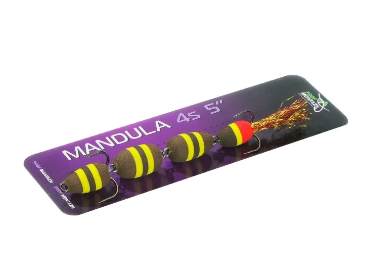 Mandula 4S 5″ 125mm (#908) – skládá se ze 4 částí těla, které poskytují vynikající hravost nástrahy, je vybavena dvěma ostrými odpališti číslo 2 a 4. Ocas mandulky je opatřen barevným lurexovým lemem.