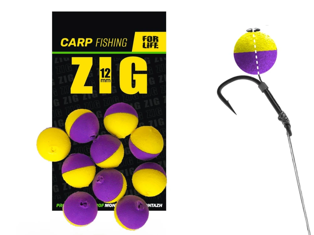 Plovoucí nástraha ZIG 12 mm  byla speciálně vyvinuta pro lov kaprů na ZIG-RIG. S nástrahou ZIG 12 mm můžete snadno lovit ryby ve vodním sloupci, což je obzvlášť důležité v obdobích tvorby termokliny v létě, kdy se ryby necítí pohodlně při krmení ze dna.