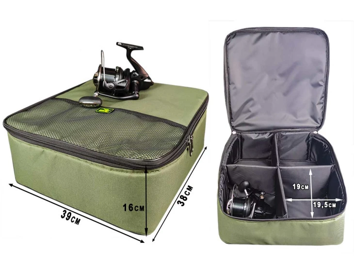 Pouzdro na 4 navijáky do velikosti 17 000 – je určeno pro bezpečné uložení a přepravu smekacích navijáků pro kaprový nebo feederový rybolov. Na víku pouzdra se nachází kapsa. Pro pohodlný transport je vybaveno ergonomickým pogumovaným držadlem.