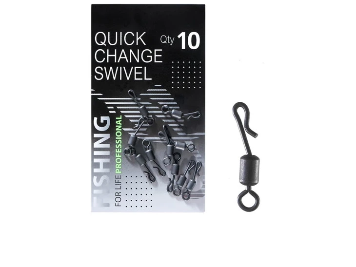 Rychlovýměnný obratlík (10 ks) – vyroben z vysoce kvalitní pružinové oceli, má PTFE ochranu proti korozi, která dodává obratlíku matný odstín. Široce se používá v kaprových montážích. Běžně se kombinuje s gumovým odklonem, umožňuje rychlou výměnu návazce nebo zátěže podle typu montáže.