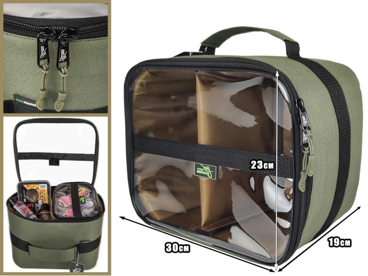 Taška je ideální pro přepravu a uložení různých rybářských doplňků, krmiv, oděvních prvků atd.